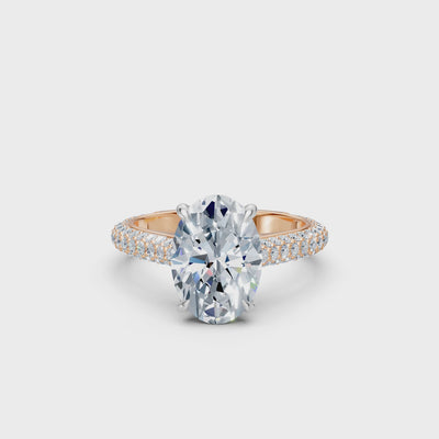 Elevate every moment with our captivating Tatiana Oval Diamond Ring, a striking fusion of classic beauty and modern allure. The glistening center stone—meticulously faceted into an elegant oval shape—commands attention, while the warm glow of the rose gold band adds a touch of romance to its timeless design. A scintillating row of pavé diamonds lines the band, ensuring that each facet of the ring sparkles with impeccable brilliance from every angle. Whether celebrating a milestone or simply indulging in a treasure for yourself, this exquisite piece exudes sophistication, love, and enduring style.